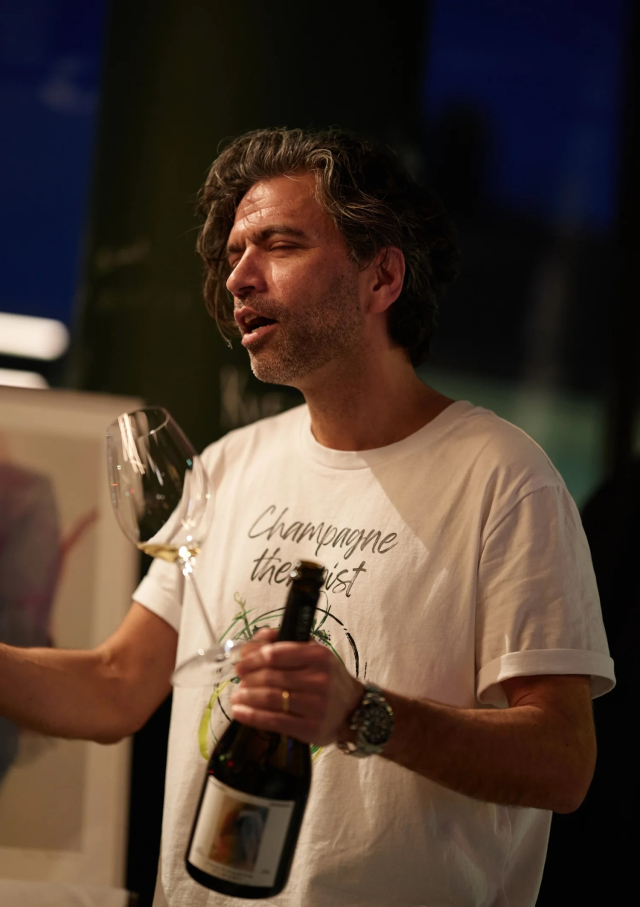 Rikelige mengder avkjølt Fleury Selection Fredrik Saroea Assemblage Brut Nature, østers naturell og kamskjell, i kunstneriske lokaliteter