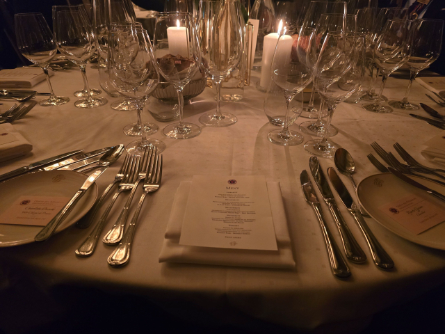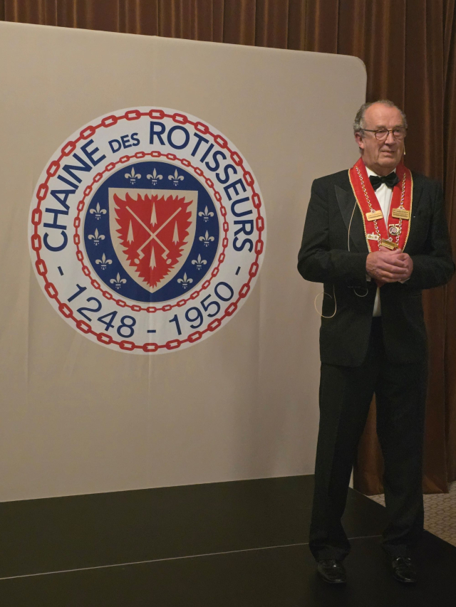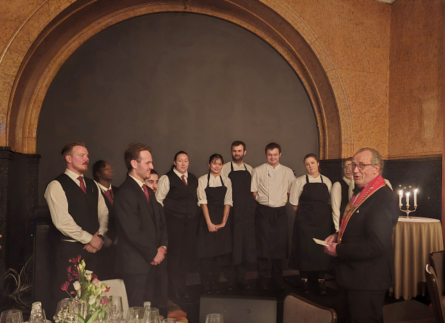 Etter intronisasjonen beveget vi oss inn i "Harmonien" til nydelige dekkede bord, og servering av en meget gjennomført 5-retters meny. Her var både smak, porsjonstørrelse og vin helt i perfekt harmoni.
