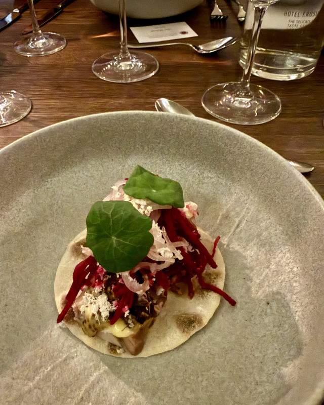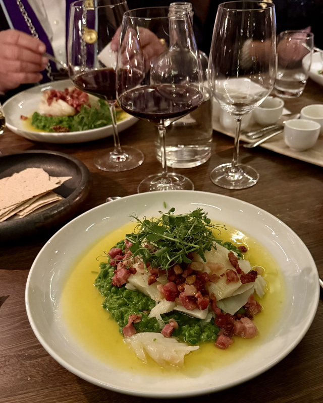 Vice-Conseiller Gastronomique Anne Beate Giske ønsket velkommen til bords. Det ble servert en 3-retters meny med lutefisk som hovedrett og nøye tilpasset drikke satt sammen av Food & Beverage Manager Maître Restaurateur Kjetil Henriksen.