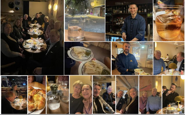 Praten gikk som vanlig livlig rundt bordene. Rart med det, når man sitter samlet rundt et noen små bord i en bar, da blir det ekstra trivelig.
